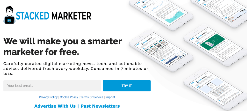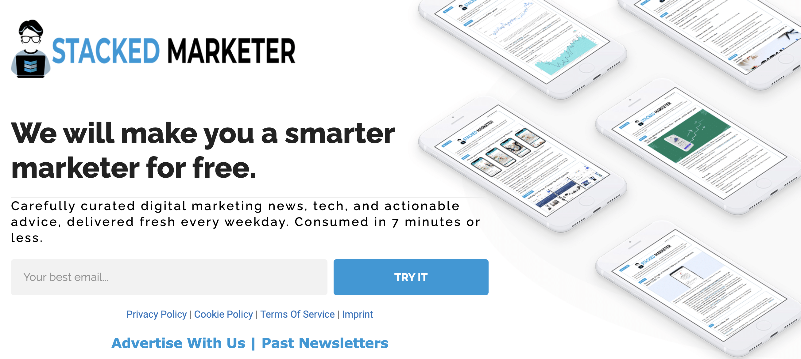 The best example of this is Stacked Marketers. They know that marketing people like us are busy – busy scrolling social media, and browsing websites for creative ideas. Plus as we all know, marketing moves quickly.